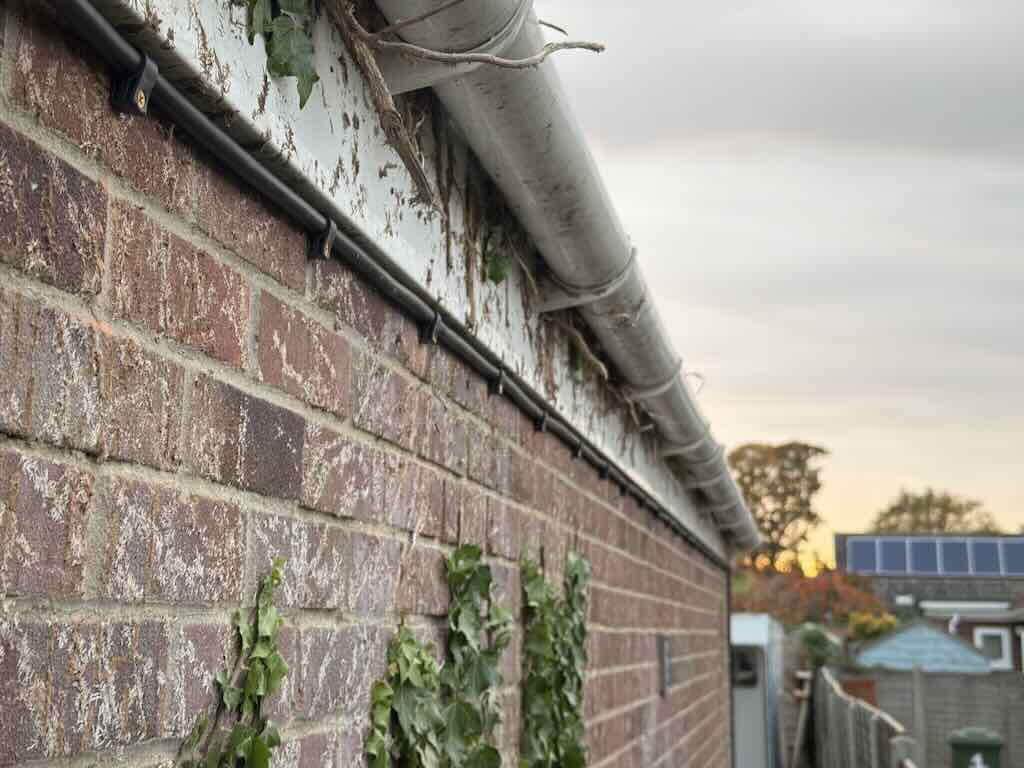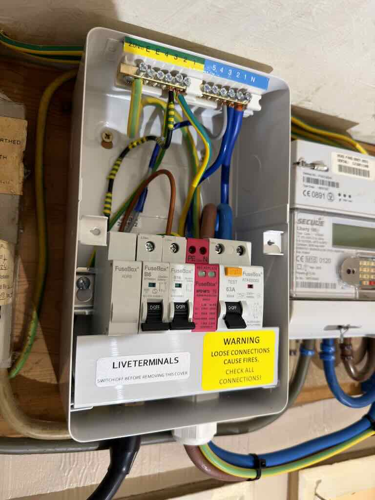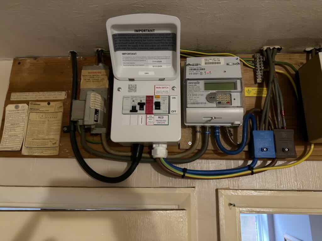 JDH Electrics installed a new electric supply to a dog kennels at the bottom of the garden – using armoured cable from a new small consumer unit in the house. The cabling was neatly clipped to the brickwork, and hurried in the ground up the garden to the kennels. Including adding a circuit for sockets used for panel heaters to keep the dogs warm in the winter months, & automated lighting via an over ride light switch. The consumer unit included a type 2 surge protection device, at the same time main equipotential earth bonding connections made to the incoming water and gas pipes.