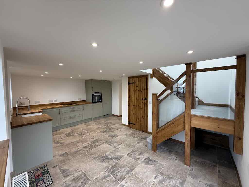 LED energy efficient lighting installed throughout, including new circuits for the hob, oven, kitchen appliances and sockets.