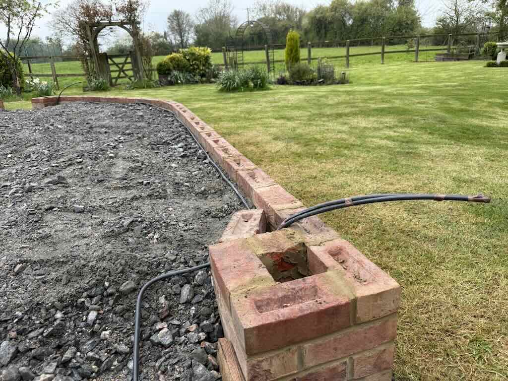 A new dedicated circuit has been installed to provide power and lighting to a new patio and garden wall, wired in armoured cable. At the same time we installed cables under the patio for a seamless finish to the pergola providing ambient lighting for the summer evening BBQ’s. The lighting is controlled by a smart, wireless switch inside the house.